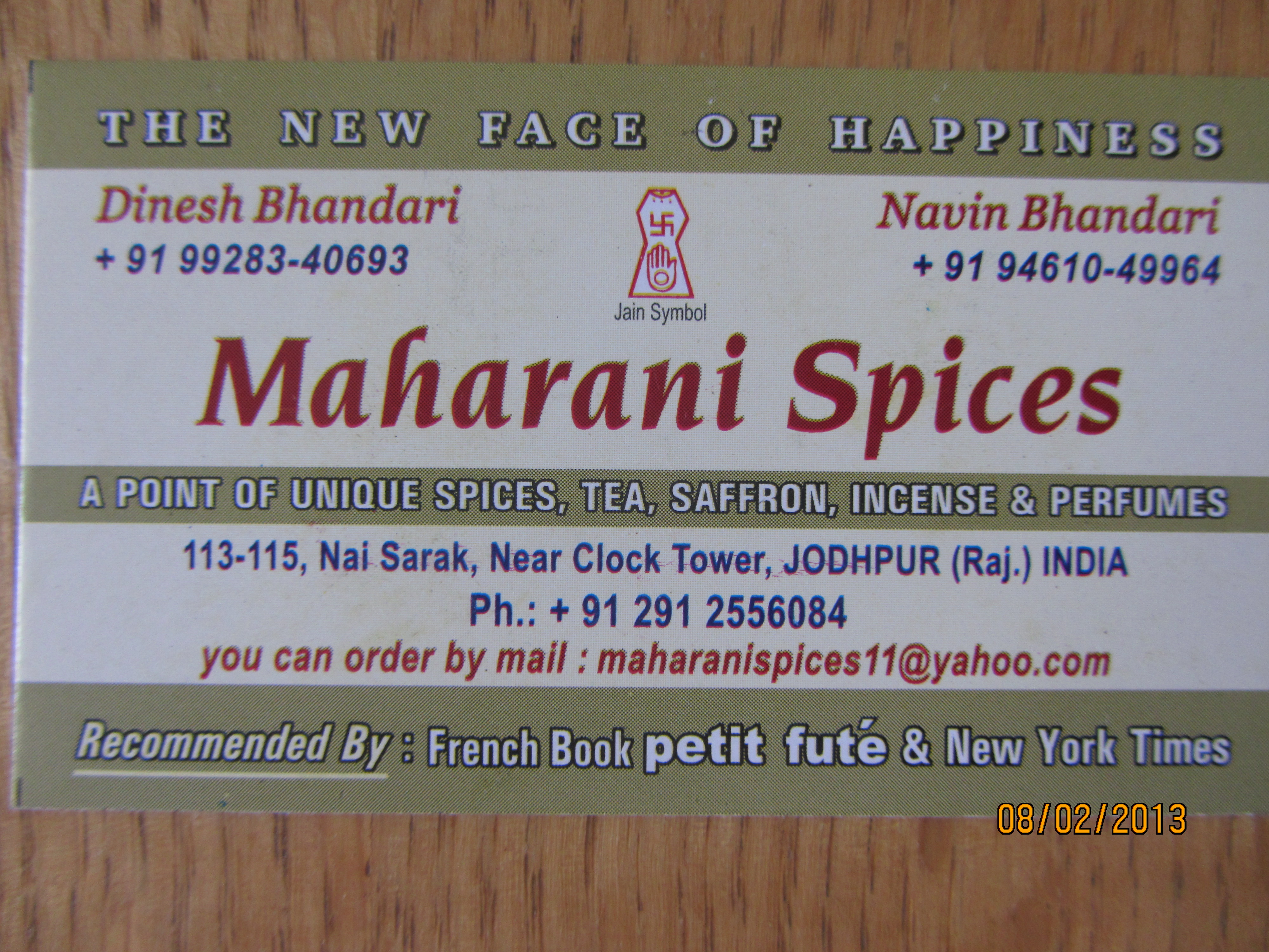 Il cheama Navin Bhandari si nu-si cauta nici o porecla. Sa faci bine sa-i retii numele. In sfarsit! ‘When you write about me on TripAdvisor, make sure you spell my name correctly, ok?’. Mi-a umplut plasa de matase (cadou din partea magazinului) cu tot felul de minuni. La sfarsit, dupa ce i-am cucerit magazinul pana jos in pivnita, m-a dat cu parfum de bergamota la incheietura mainii si mi-a zis: acum, alege-ti un cadou. Am inhatat o sticluta cu esenta de lotus, desigur. ‘You know, one girl fell in love with me. O chema Laura si era din Spania; venise cu parintii. Cand i-am spus sa-si aleaga cadoul, a spus ca ma alege pe mine. Si-acum imi amintesc cu placere de ea.’ Imi termin ceaiul, ii multumesc si-l asigur ca va fi pe TripAdvisor, cu magazinul lui cu tot: ‘Maharani Spices-The New Face of Happiness’.