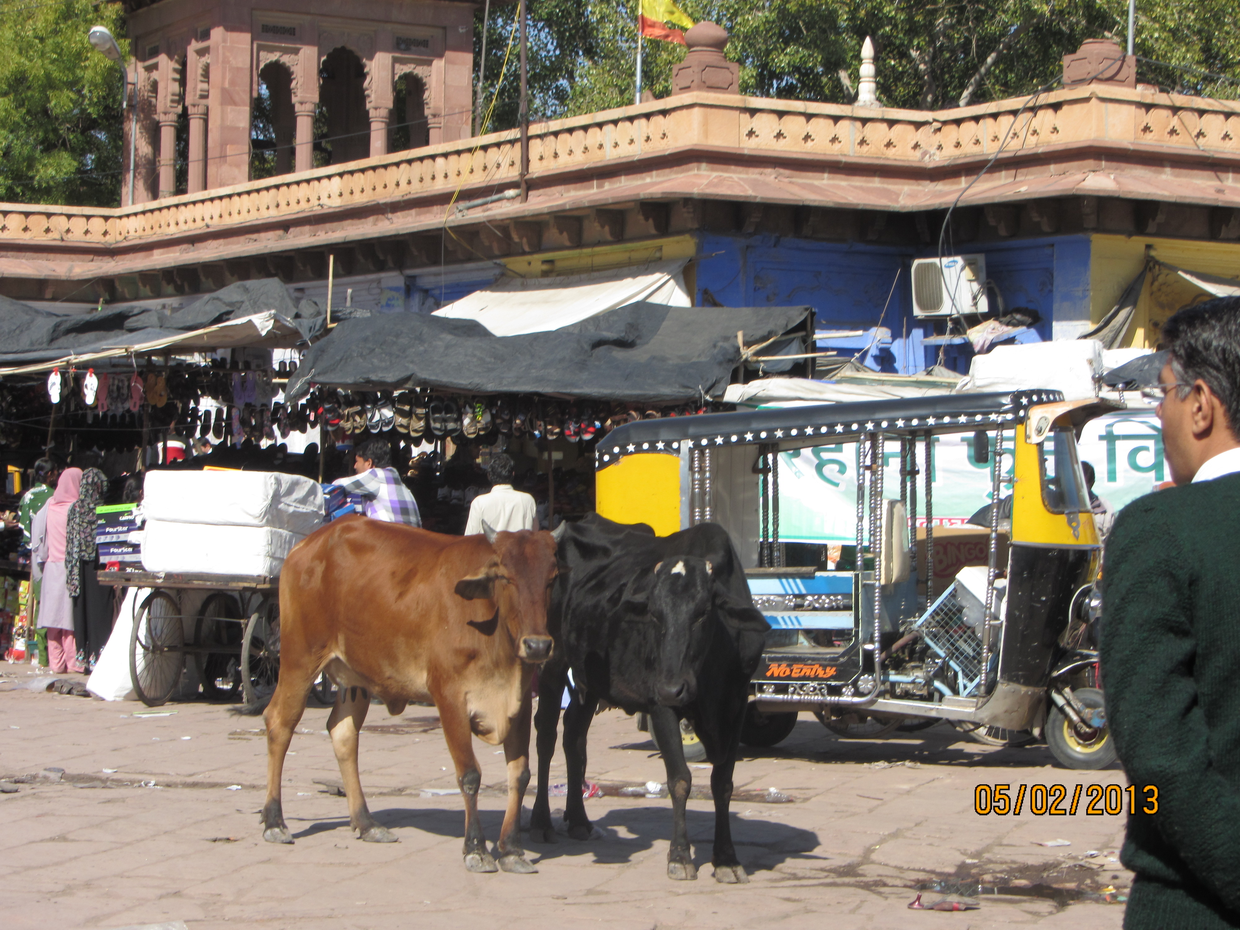Eu am vrut-o (‘Tu l’as voulu, George Dandin’..). Ma ia de-ncheietura si zice serios: ‘You pay attention to your bag, to three-wheelers, to two-wheelers and to cow shit’. In traducere aproximativa: tine geanta pe burta, vezi la ricse, fugi de motociclete si stai deoparte la ce iese dintre patru picioare. Ok, sa purcedem!